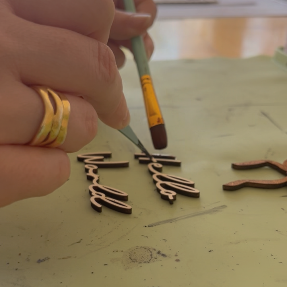 We handmake each piece in our home studio from designing, painting, and wrapping every order with care.