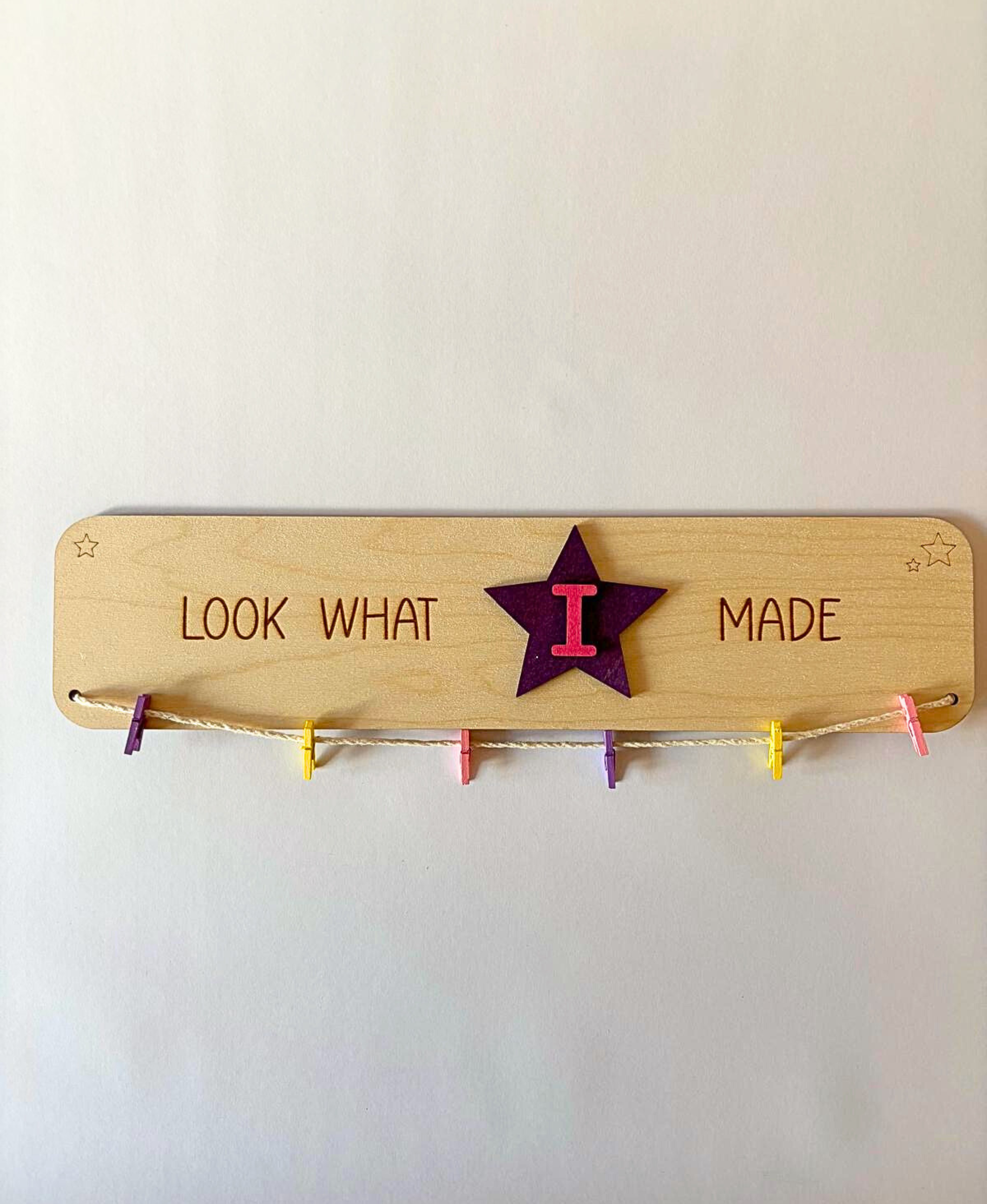 Celebrate creativity with our Look What I Made sign — the sweetest way for little artists to proudly hang their masterpieces.