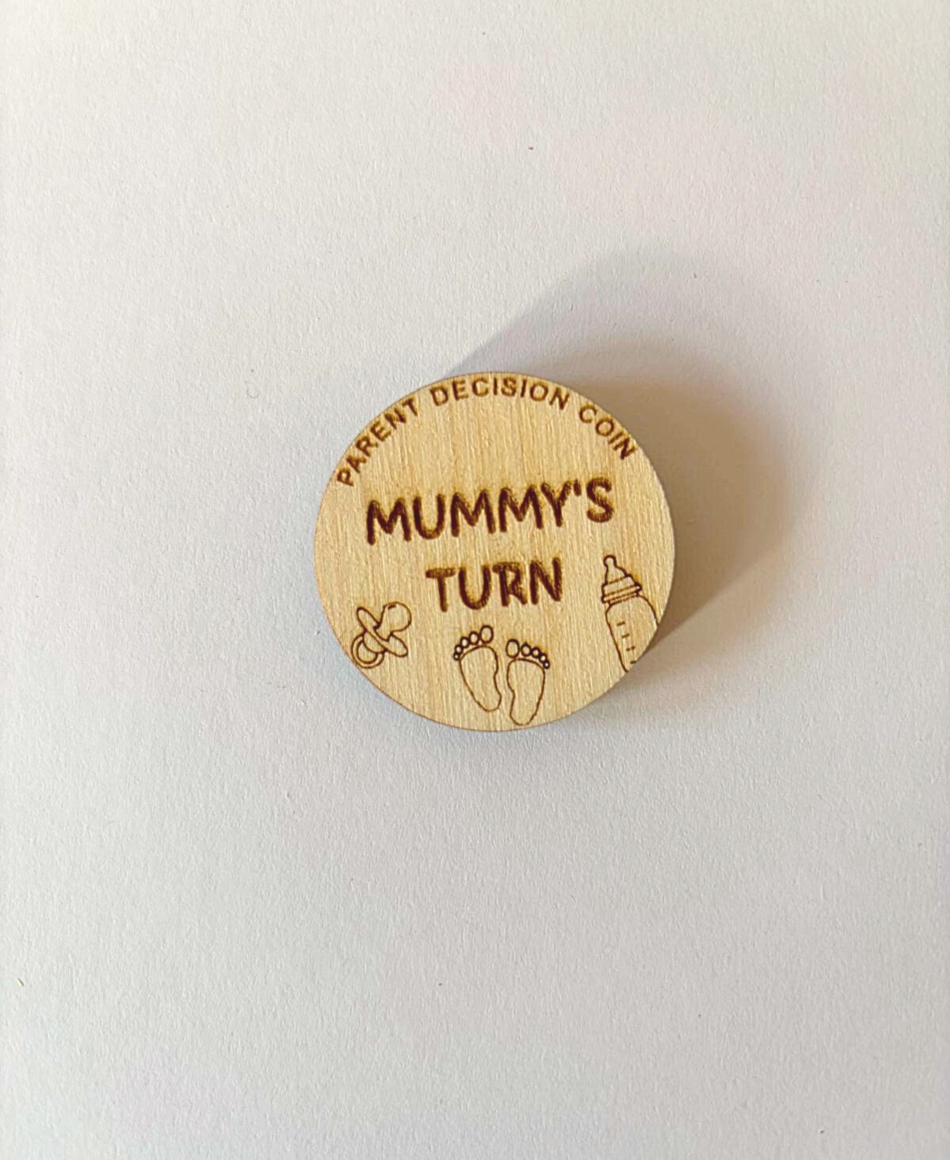Lovingly made from sustainable birch plywood, each coin is engraved on both sides with Mummy’s Turn and Daddy’s Turn, making it a fun and thoughtful gift for new parents.