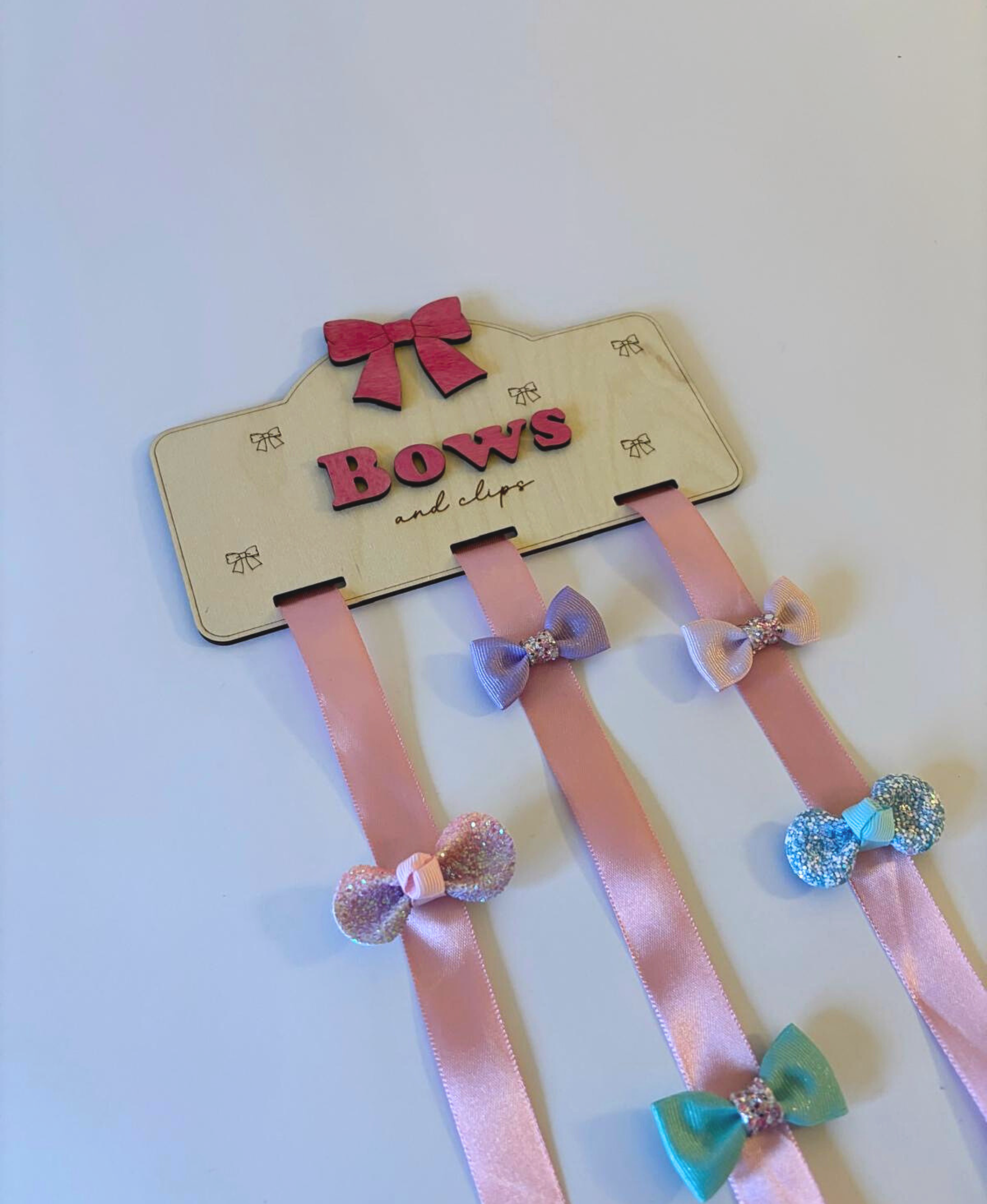 Personalised Wooden Bow & Clip Holder