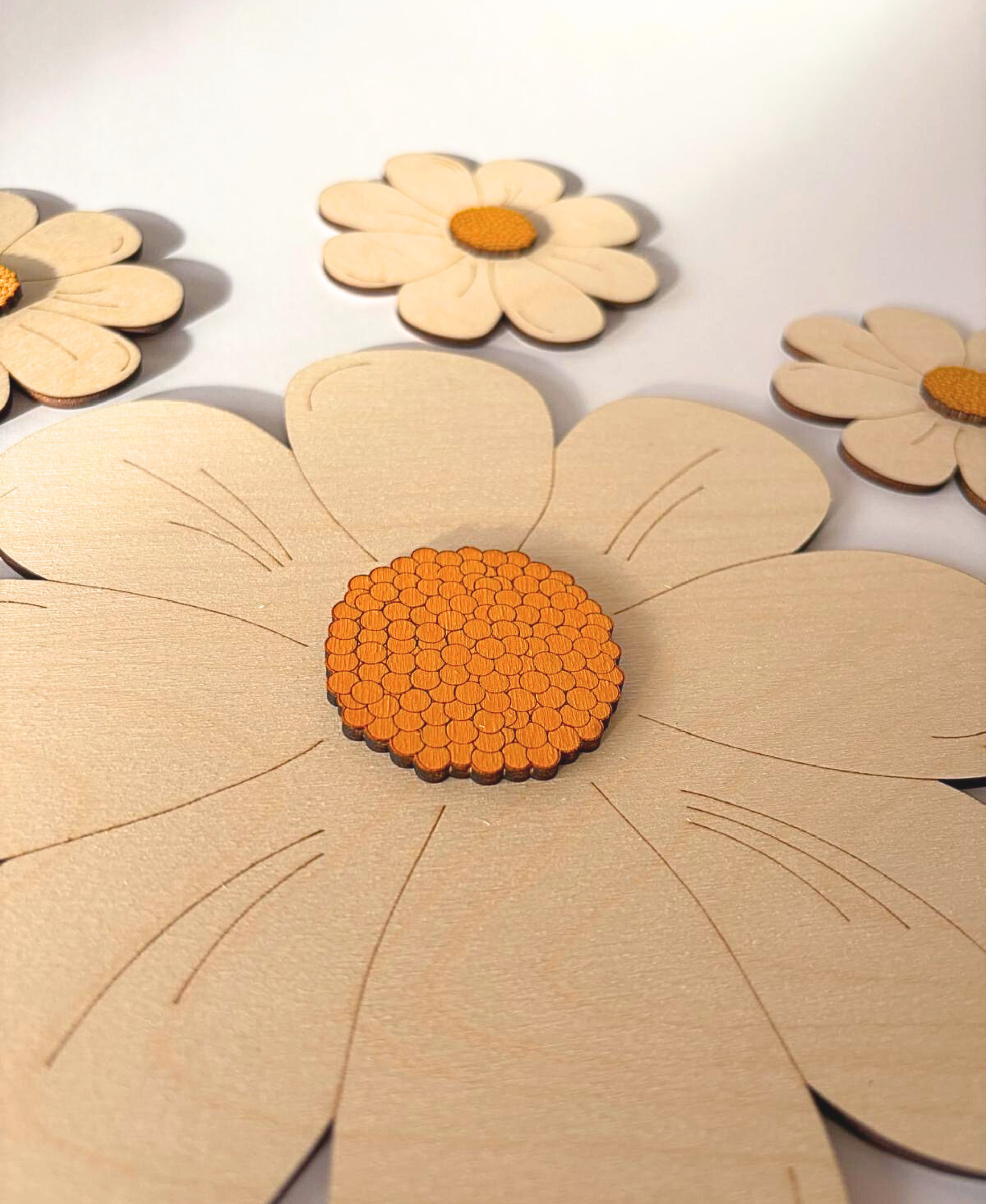 Bring a little sunshine indoors with our Wooden Daisy Wall Set. A delicate collection of wooden flowers designed to add natural warmth and charm to your child’s space (or your own!).